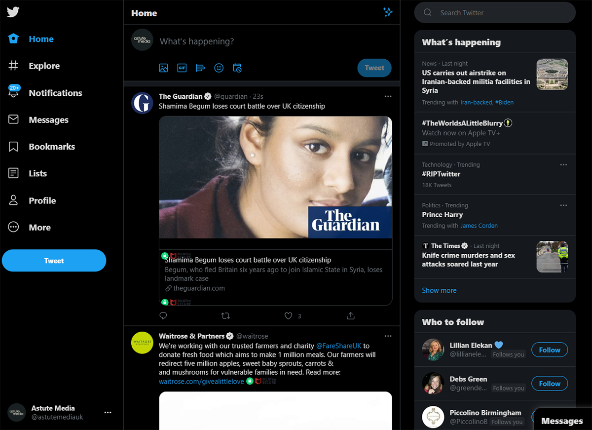 If you are using Twitter on a web browser, you will often find that the latest trends and trending #hashtags are displayed to the right of your profile under the ‘What’s happening’ tab. It will usually give you the top few results at the specific time of day, and the geographic location you access Twitter. If you were to click on the show more button, it will display all the top trending tweets, hashtags, etc. for different categories such as Business and Finance, News, Sport, Entertainment or general trending content, and the top trends from people you follow on your Twitter account as well.
