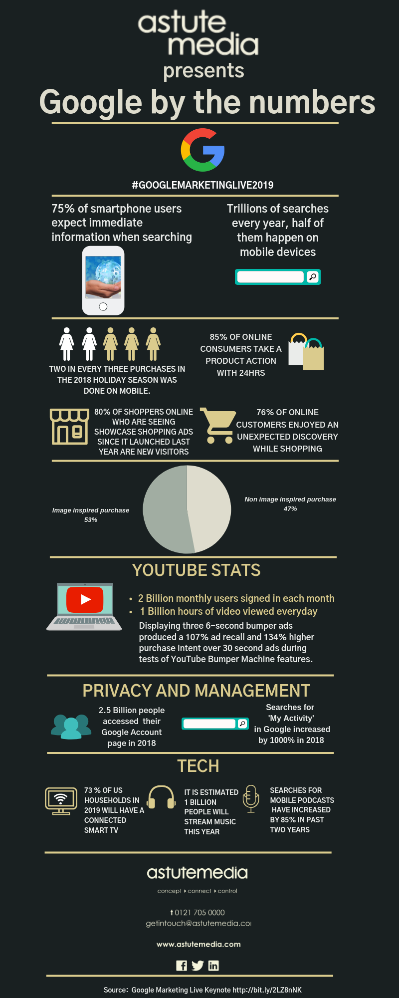 Following on from our blogs on Google Marketing Live 2019 we have produced an infographic highlighting some of the key numbers revealed by Google.