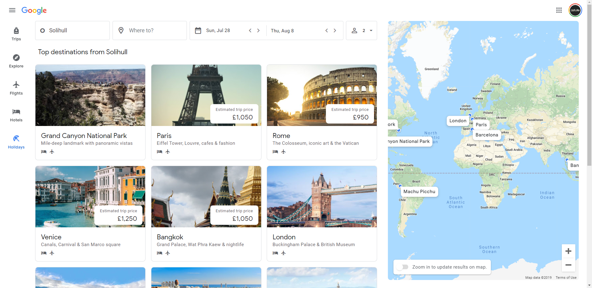 Google Travel is available on mobile now and is starting to roll out on desktop. Take it for a spin at www.google.com/travel.