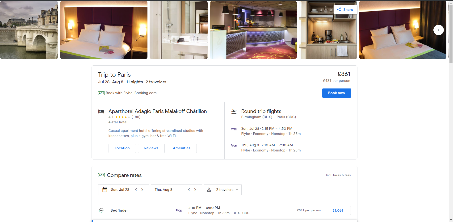 If a hotel is in the Google Hotel Partners scheme, customers will be able to compare prices, availability and conduct price comparisons within Google Travel. The user will then be able to book directly with the Hotel. An additional feature to Google Travel is that when someone books accommodation, flights, event tickets etc, the user receives the email to their Gmail account but the confirmation of payment and booking appears in the user’s timeline. So even if they accidentally delete the email, there will still have access to the order details etc on their Google Travel timeline.