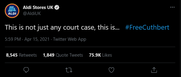 While the matter is serious in determining copyright infringements, we cannot help but love the way social media channels have helped diffuse the issue and create a talking point. Aldi’s social media team is certainly driving the conversation utilizing the #FreeCuthbert hashtag. It is proved such a popular talking point that even other brands are getting in on the act including fashion brands like PrettyLittleThing and ASOS. Even rival supermarkets have been jumping on the band wage in on the act by also poking humor at the recent rise and fall of football's European Super League proposals. While the issue is a serious one, it is great to see a positive rivalry unfold on social media and seeing the positive effect it has on engagement with the side effect of raising funds for worthy causes. It also has other brands and digital marketeers getting involved, leading to a whole range of new memes and posts that not only increase positive engagement but give others an opportunity to take advantage of the ongoing trend.